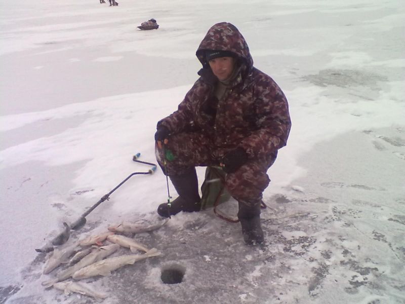 Сегодня, Мёша!Ледок просто прелесть!!!Прям буришь-буришь!!!Рыбу нашёл достаточно быстро-один!!!Моя компания застряла на мелком берше,а я упёрся на километр ниже и на свале нашупал судачка!!! Клевал редко и не больше одного с дырки и только на определённой глубине!!!Глубже-пусто,мельче тоже пусто!!!Короче я понял где он стоит и начал двигаться по этой полосе вверх по руслу!!!Русло ломанное и на выступах поклёвочки!!!В гордом одиночестве получилось рыбачить пару часов...За это время изловил штук 8 судачков и пару жирных окуней!!!Потом подошли "мои",а потом и чужие.... Короче охи-ахи,как?На что?Куда?и тд и тп!!! Я "сдал" тактику ловли и все начали помаленьку ловить!Судачёк брал редко но с жёстким ударом и размерчик был отличный!!Нескольку штук у меня по килограмму,один даже больше есть...Мелочи не было вообще!!!Запомнился жирный бёрш на 900 гр!!!"Мамонт" взял на 3-х метрах!!!В общем рыбалка очень понравилась всем!!!Следующий выезд планируем на Каму...