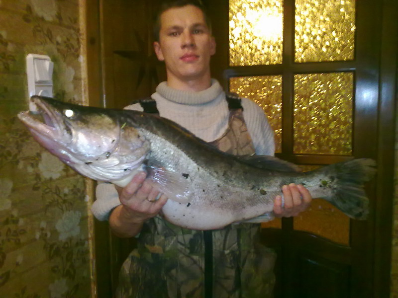 Данный экземпляр прошлого года вес 6100, ездил в районе островов за вторым мостом Сорочьи Горы. Взял на блесну очень старого производства(нет в продаже) прямо под лодкой, удар был не сильный если вообще можно сказать что удар, потом немного поупрямился у дна, когда оторвал начал кружить под лодкой, пытался завести под якорь, но с нами этот фокус не катит, пару мощных потяжек, подсак и он на борту! Глубина лова 18м, течение слабое, клев остальной более мелкой рыбы средней активности.