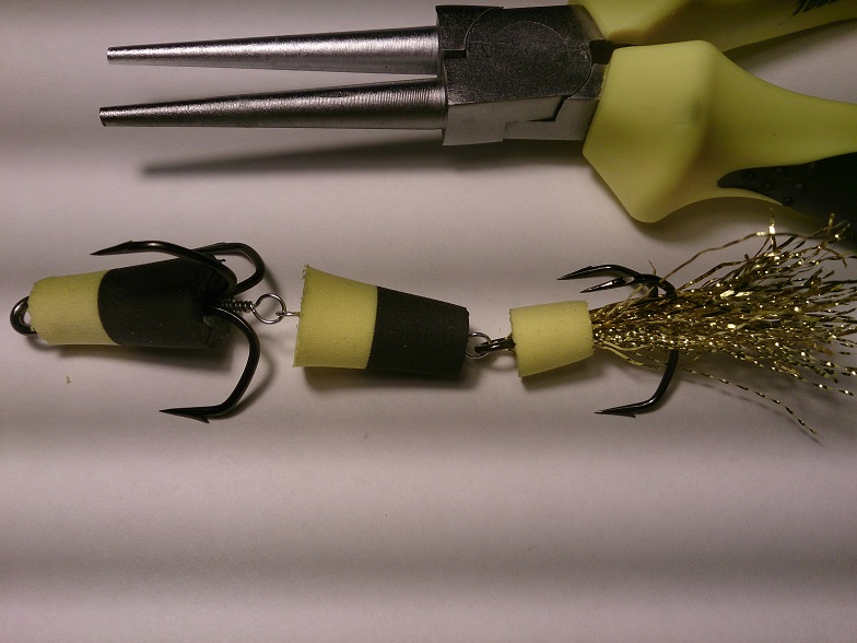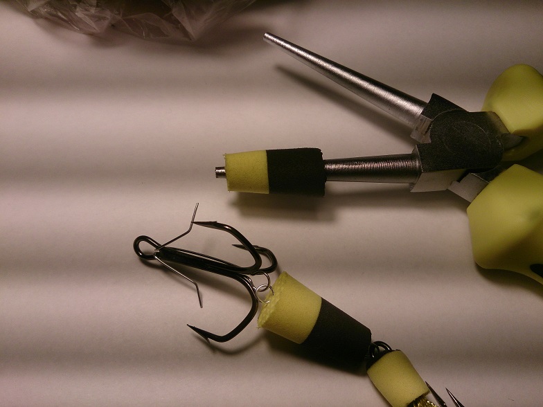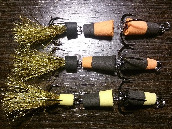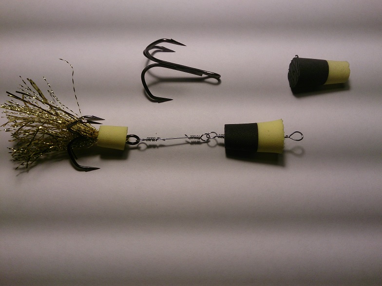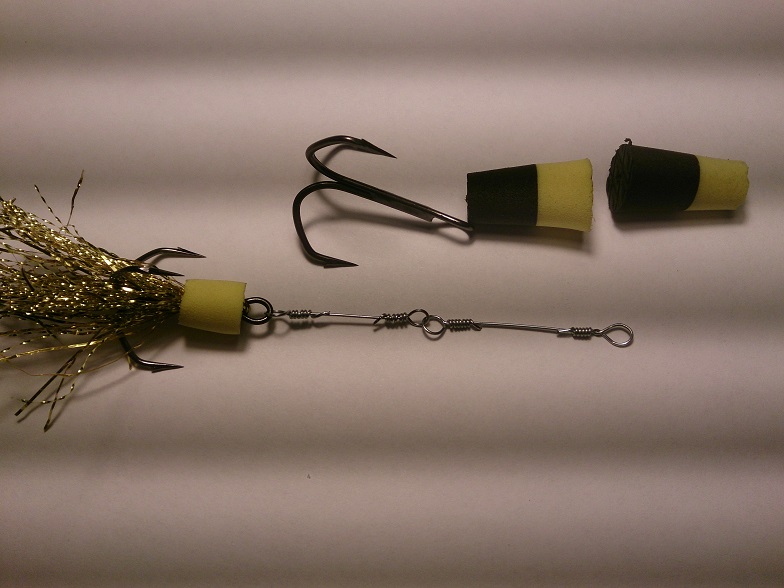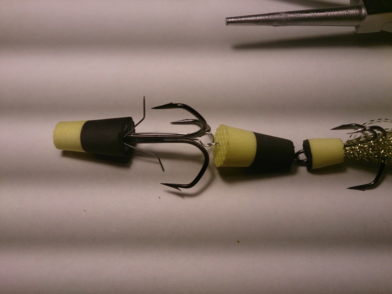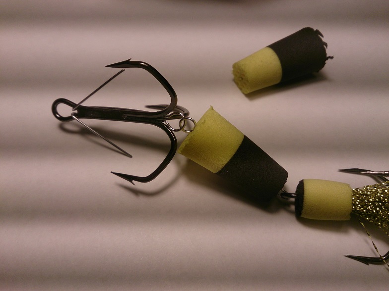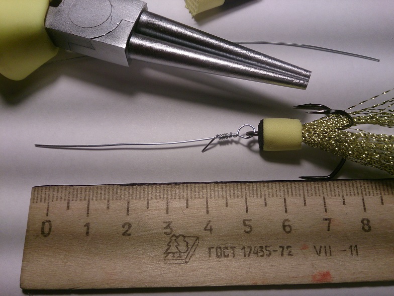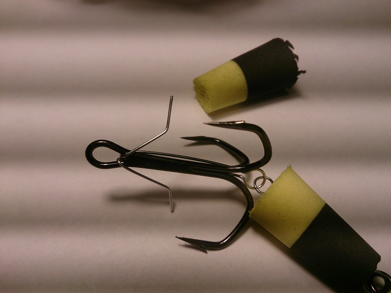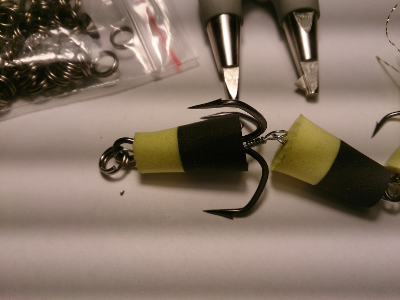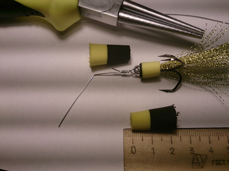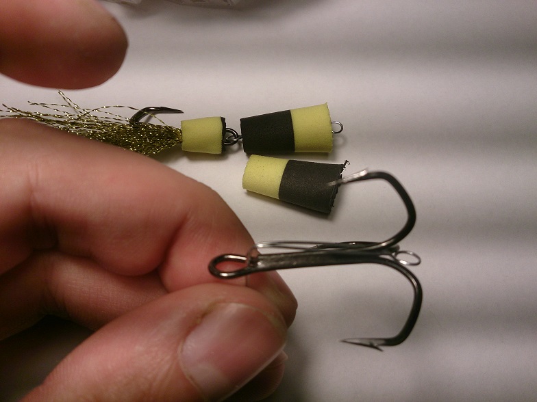 Размер рассчитан на каждый крюкан и тоже имеет положительную плавучесть! ( см. вложение ). Излишний размер хвостовой части прямо пропорционален с размером тройника! Если тройник ставить мелкий, а "поплавок" большой - очень много сходов, рыба плохо засекается.