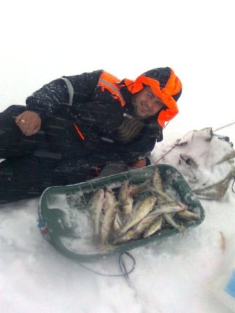 Глубина 9-14 м. С утра регулярный клёв некрупного судачка, к обеду затихло, с началом метели, поклевки возобновились, но решено было идти к машине т.к. видимость стала резко ухудшатся, а солнце садится. Итог нашей компании 5-7 кг на каждого. Немного, но хватит. Как говорится, рыбалкой доволен.