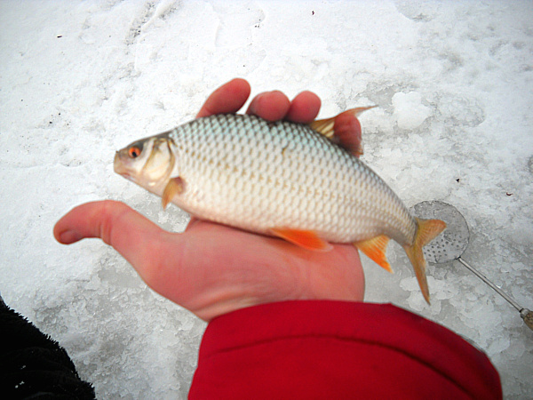 Сегодня проверили, озеро в Азнакаевском районе д.Чемодурово. Погода: -8, ветер(изночально небыло, постепенно наростал) Приехали в 6-45 было еще темно, но народ уже караулил свои заветные места, машину припорковали с трудом. Как только стало рассветать, народ будто с цепи сорвался, как на соревнованиях ломанулись кто куда( надо было видеть) Мы смирно курили в стороне, пили горячий бодрящий кофе смеясь над ними. Но как говорится,смеется тот кто... Не спеша вышли на лед, забурились. Глубина 3-4 метра безмотыльная снасть... Поклевок нет. Потом до нас стало доходить, что народ не просто так ломанулся, но все перспективные места уже были заняты. Следующие 1час 15 минут прошли в изучениях рельефа дна, всеразличных перекатах, бровок,ям с помощью не хитрого приспособления глубиномера. Как известно кто ищет тот всегда найдет. Место оказалось и в правду клевым. Рыбы там было немерено.Била мармышку то агрессивно,то плавно, иногда еле заметно. На одной и тойже игре мармышкой не зацикливались, эксперементировали. Результат эксперемента был 100% Рыбалкой доволен. В улове 3кг отборного окуня,и 2кг плотвы.Вот так сегодня мы сьездили половить рыбку.