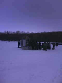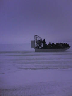 Но буранщики сделав по одному рейсу и вдоволь набуксовавшись решили народ больше не возить,в результате многие двинули пешком,многие уехали на чудо аэро санях,которые не дорого и быстро(до 6 вечера)перетаскали всех на берег.