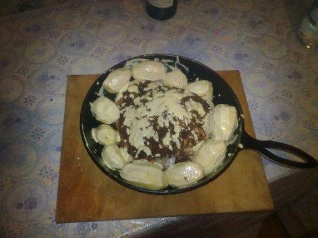 - Картофель (сколько поместится в свободное место в сковороде или противне)