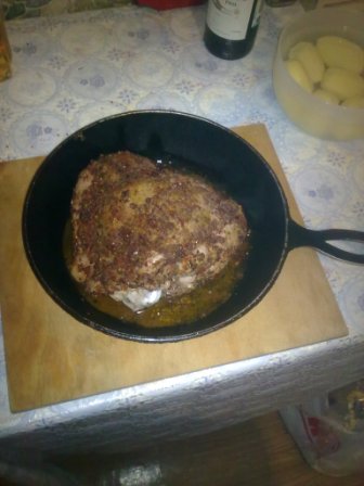 Еду с работы, хочу есть, думаю об ужине. В голове витают мысли о хорошем, зажаренным кусочке мяса, и решение посетить мясной магазинчик пришло как-то само собой. Вооот. Захожу значит, а там свежие вырезки, перепелки и вот оно – бедро индейки. Сердце учащенно заколотилось, слюна начала капать на витрину – Сцука очередь. Но вот она доходит до меня и есть бедро уже в пакете. Уверенным шагом двигаюсь в сторону дома, прокручивая вариации приготовления индейки. Выкладываю бедро на блюдо, и спинным мозгом чувствую, без градуса не обойтись! Достал из старых запасов бутылочку белого, наливаю бокальчик, первый ушел залпом, налил второй и решил заняться все таки индейкой.