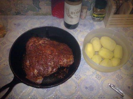 - Индейку солим, натираем приправами и забываем про нее (желательно часа на два) но у меня столько времени не было, поэтому забыл на полчаса. Картофель чистим и оставляем его целиком.