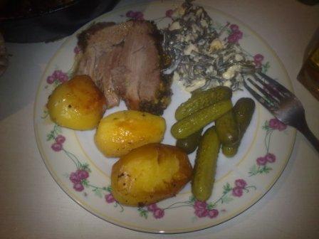 Сервируем тарелку (салат из морской капусты с сыром и маринованные корнишоны очень были кстати)