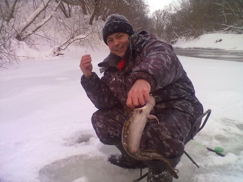Хотели уже назад вернуться,но всё же решили попробывать потихоньку...Обследовал пешнёй пятак 5 на 5 метров с более менее удовлетворительным льдом!Сели...Блёсны-балансиры в воду ждём...Полчаса-у брата поклёвка и налим на 1,5 кг на льду!Уже не неожиданный,а наоборот-долгожданный!