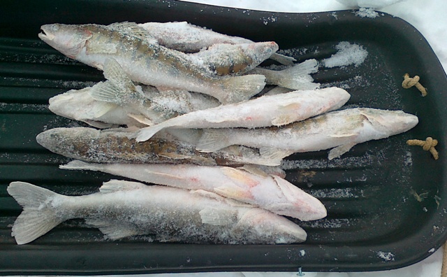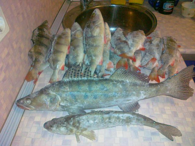 8 го были в гостях и на рыбалке тоже.На лыжах с шурином(кто был на жаркой татфишухе 2010 помнит моего тезку) и со товарищами Батыем и Фетманом обследовали камскую акваторию.С утра сомнений ехать или нет не было.хотя по приезду на место в машине датчик темпертаруры приближался к -30-ти.Вот те на!Быстро собрались на лыжи и протопали по навику примерно 2,5 км.сели на глубинах 13 метров,ровный стол,с одной лунке случайно зацепил двух недомерков и одного приличного берша.У фетмана на 10-11м неплохой судачек и несколько бершей на фосфорную мормышку.У других еще хуже.