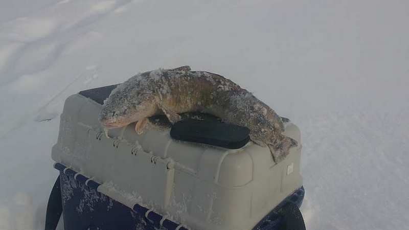 Вытащил только двоих, остальных только пальцами в лунке пощупал, упертые они какие то. Да и одного из этих, мизинцем только зацепил за плавник, когда вокруг руки обвился, только тогда перехватился и вытащил. Первый раз их ловлю, не знаю все их хитрости