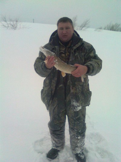 Воскресенье 6.02.2011, озеро "Х" 45 км от Казани. До озера от трассы 1 км, но тропы нет, по пояс в снегу добирались 50 мин. даже в термобелье ощущение не из приятных- выжимать можно. Живца - мелкого окуня наловили быстро за 15 минут на 9 жерлиц. Дальше было самое интересное: окунь на мотыля ловился безотказно всего около 2 кг все из одной лунки, первая поклевка на жерлицу случилась в 12 ч 00 м, но мимо, вторая на эту же жерлицу через 15 минут, подсечка по ощущениям щука на три килограмма и уже возле лунки сход с обрывом, подумали с товарищем, что порвалась старая леска 0,3 мм, оказалось все сложнее разогнулось заводное кольцо